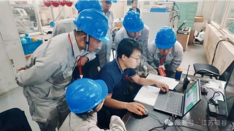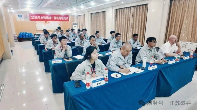 江蘇磁谷成功承辦某央企環(huán)保公司《永磁調(diào)速一體機(jī)工廠生產(chǎn)線實(shí)操培訓(xùn)》,為期3天的深度技術(shù)研修于6月20日?qǐng)A滿收官。本次培訓(xùn)集結(jié)了該企業(yè)技術(shù)骨干20余人,通過(guò)"理論+實(shí)踐+研討"三維賦能模式,重點(diǎn)圍繞永磁調(diào)速一體機(jī)的技術(shù)原理、結(jié)構(gòu)組成、性能特點(diǎn)及應(yīng)用領(lǐng)域、操作規(guī)范、檢修維護(hù)及故障排查等核心內(nèi)容展開(kāi),培訓(xùn)內(nèi)容豐富、培訓(xùn)形式多樣,同時(shí)開(kāi)展了實(shí)操技術(shù)比武和理論考核,保障了培訓(xùn)效果,為國(guó)產(chǎn)永磁裝備制造注入新動(dòng)能。 培訓(xùn)亮點(diǎn)之前沿技術(shù)拓展視野 永磁調(diào)速一體機(jī)作為新型節(jié)能設(shè)備,能精準(zhǔn)調(diào)速匹配負(fù)載,實(shí)現(xiàn)節(jié)能減排、降本增效。公司專業(yè)講師深入講解,讓學(xué)員深入了解該領(lǐng)域前沿技術(shù),拓寬了技術(shù)視野。